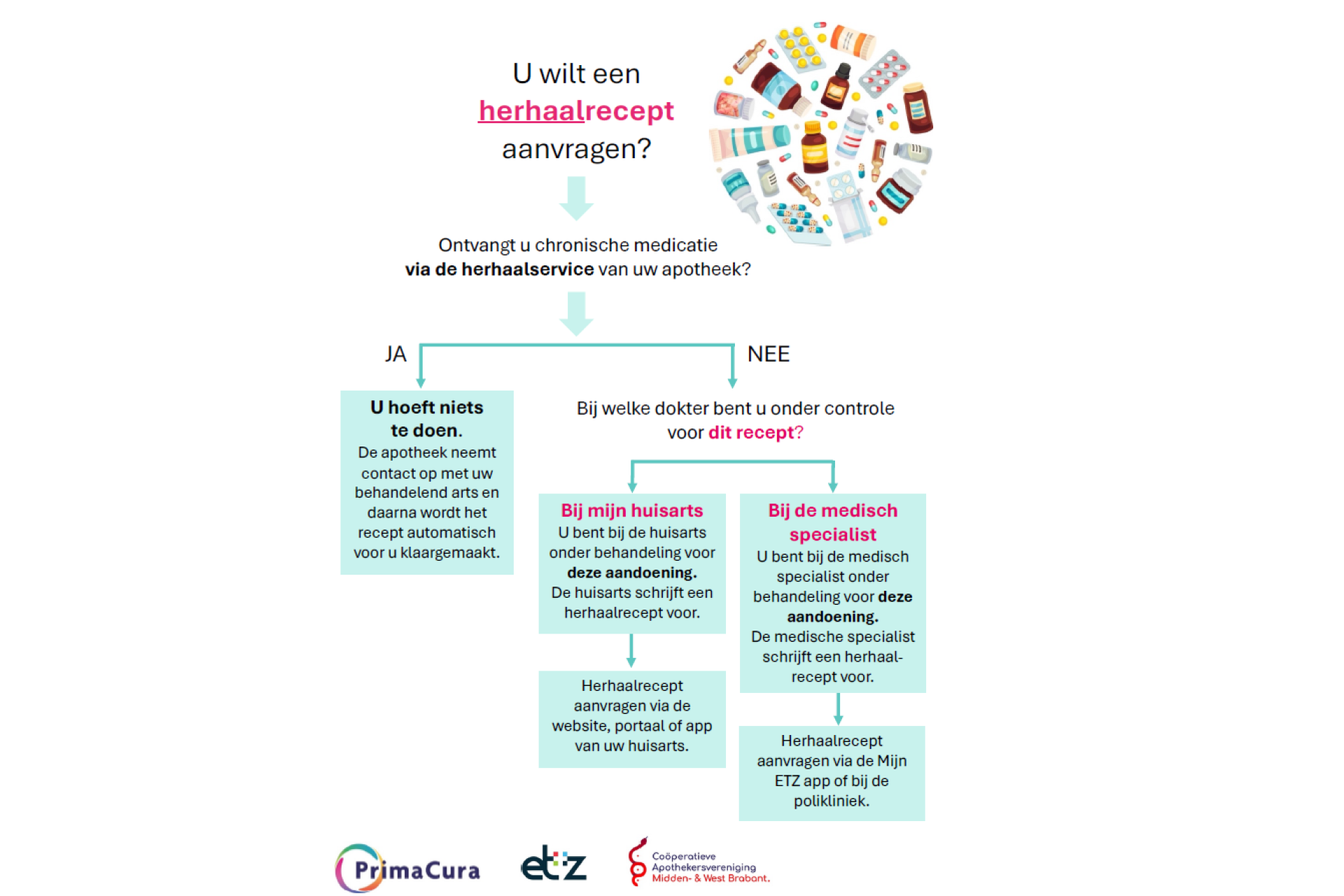 Heb je medicijnen die je langdurig gebruikt en die eerder door de huisarts zijn voorgeschreven? Bestel dan je herhaalmedicatie online via jouw portaal. Gemakkelijk en snel! Zo kun je herhaalrecepten aanvragen op een moment dat het jou uitkomt en ben je niet afhankelijk van openingstijden van de praktijk.